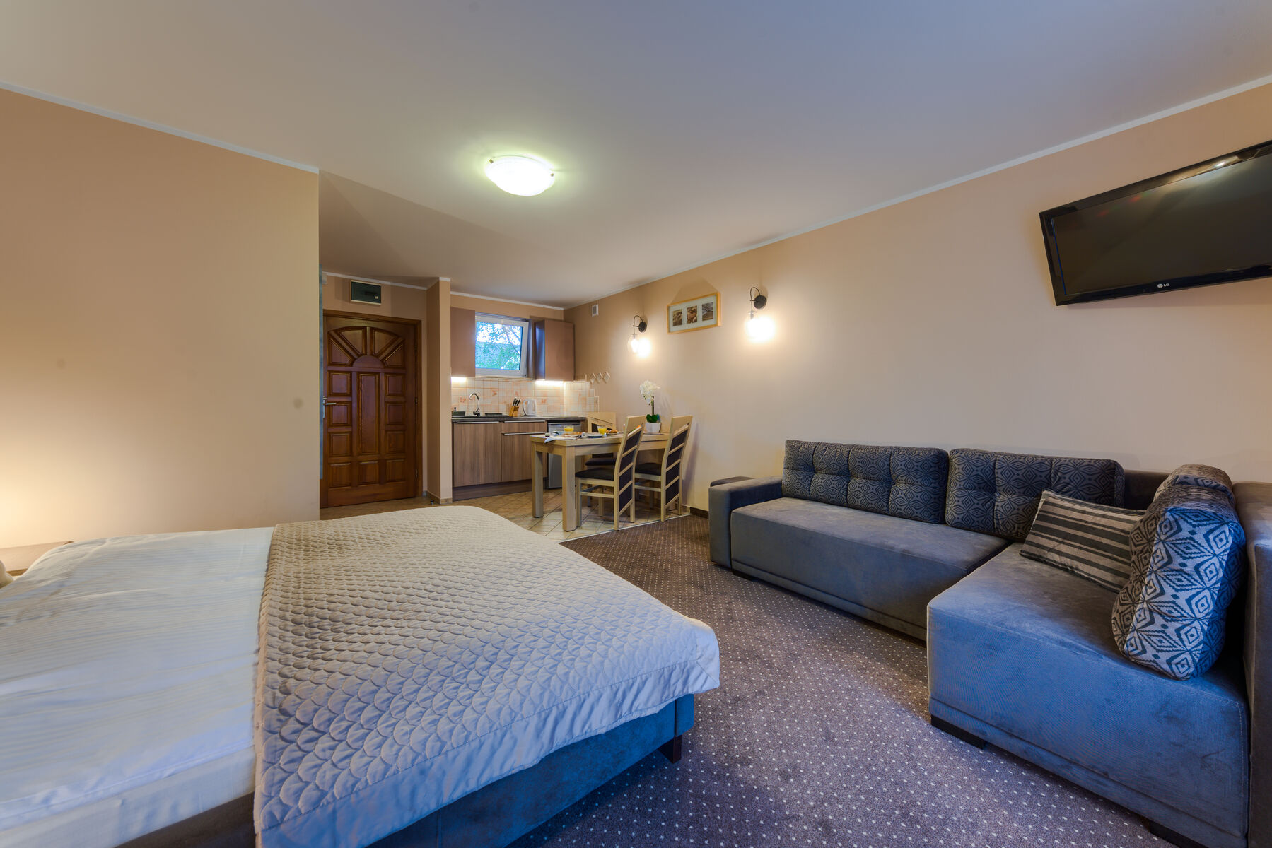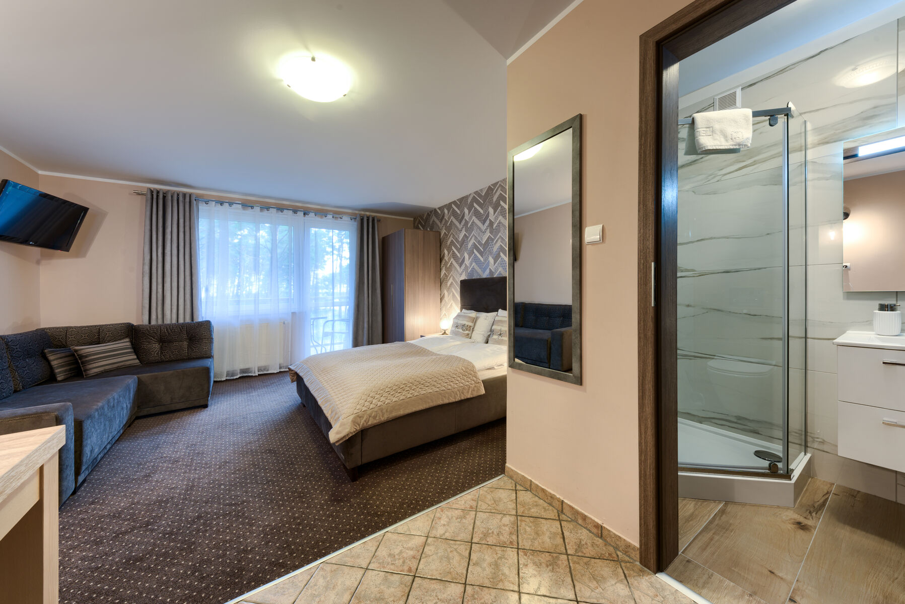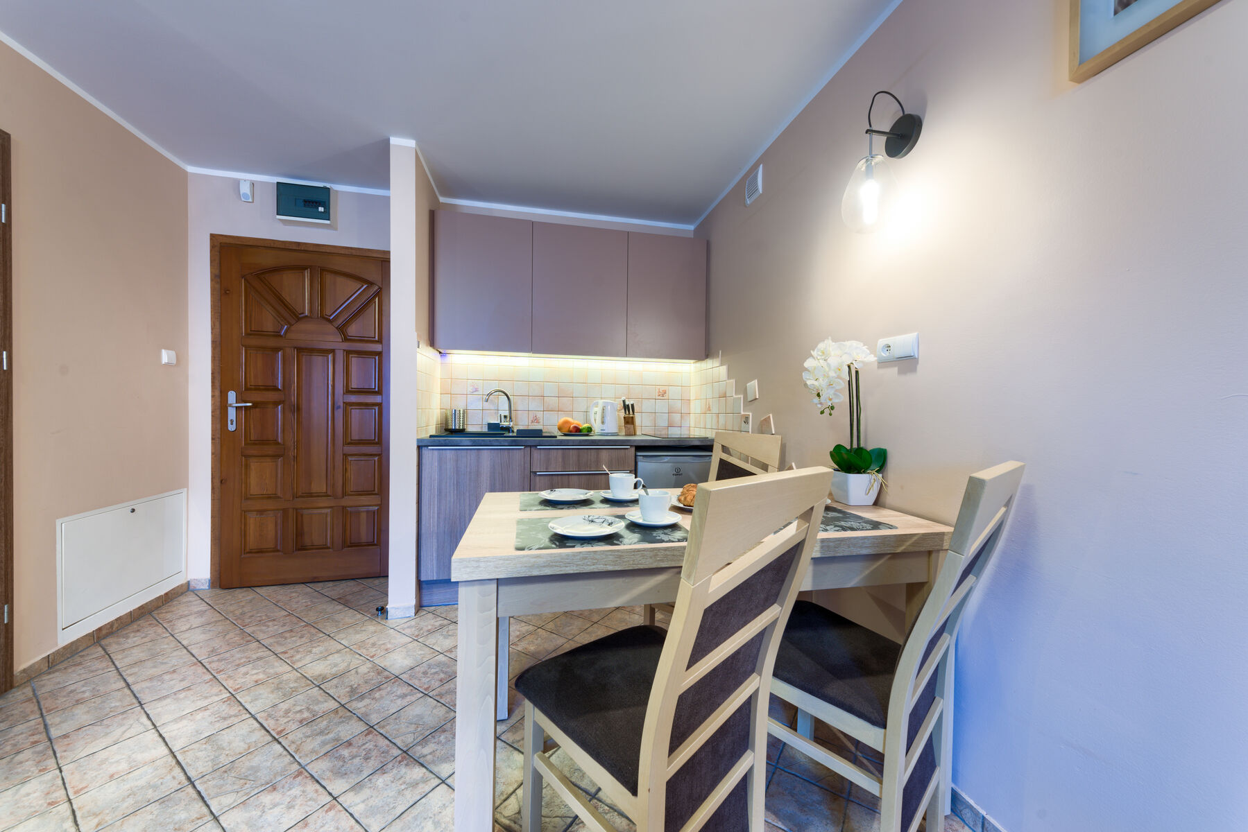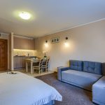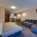 Udogodnienia: – TV – Wi- Fi – wyposażony aneks kuchenny – pościel i ręczniki – balkon – bezpłatny parking (1 auto na apartament) – zestaw plażowy (leżaki, parawan, koc plażowy) – obiekt monitorowany – sejf – alarm – suszarka do włosów – suszarka do ubrań